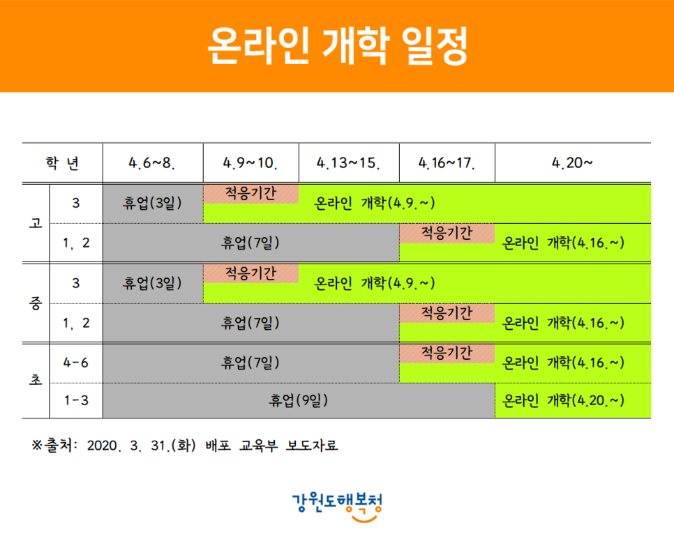 [긴급] 강원도 학교 개학 2주 연기 알림